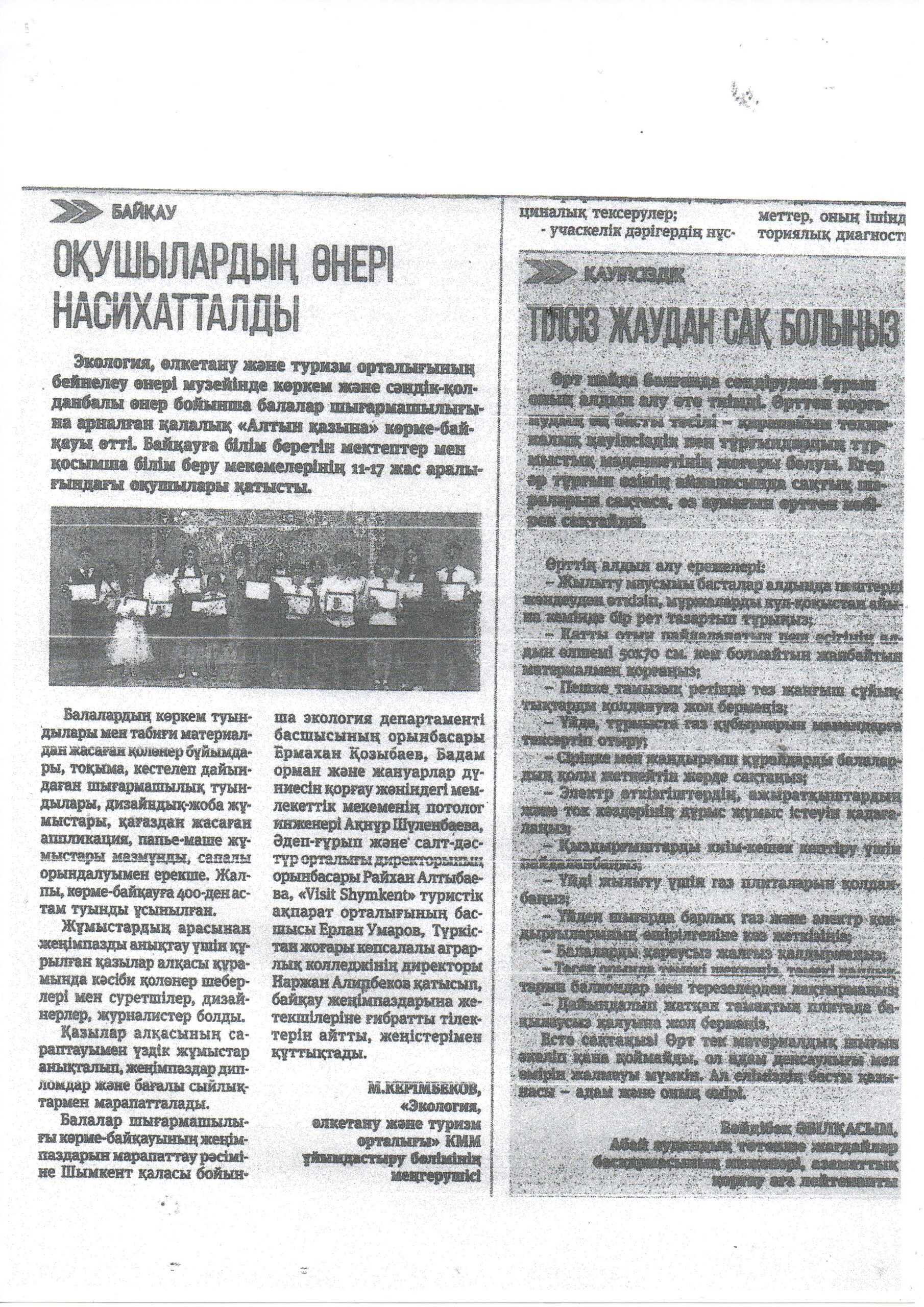 Іс-араның мақсаты туризм күнін атап өту, мекеменің туристік қызметін жандандыру, үйірме білім алушыларының туристік ептіліктері